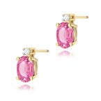 Kolczyki złote T-0001 próby 0,585 z brylantami i różowym topazem 2x0,50ct sztyft zakręcany