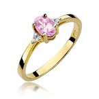 Pierścionek z żółtego złota próby 0,585 z różowym topazem i brylantami t-301