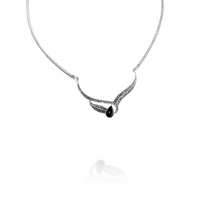 Naszyjnik Kolia srebrna 925 z markazytami i onyksem