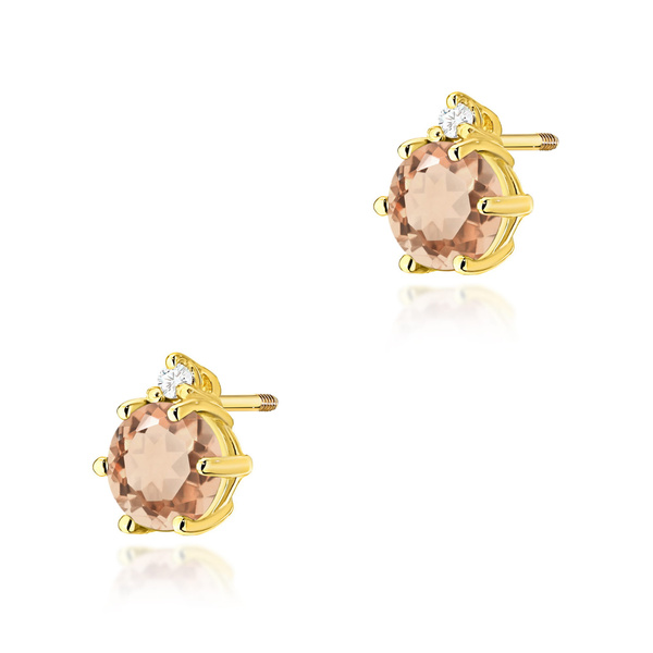 Kolczyki złote T-076 próby 0,585 z brylantami i z morganitem