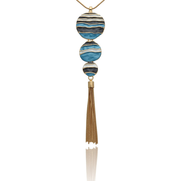 - Naszyjnik z kolekcji YVON BIŻUTERIA ARTYSTYCZNA, wykonany z metalu hipoalergicznego. Zdobiony emaliowanymi elementami, które tworzą elegancką, harmonijną kompozycję. Naszyjnik o długości 65 cm z możliwością regulacji o dodatkowe 8 cm.