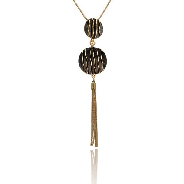 • Naszyjnik z kolekcji YVON BIŻUTERIA ARTYSTYCZNA, wykonany z metalu hipoalergicznego. Zdobiony emaliowanymi elementami, które tworzą elegancką, harmonijną kompozycję. Naszyjnik o długości 65 cm z możliwością regulacji o dodatkowe 8 cm.