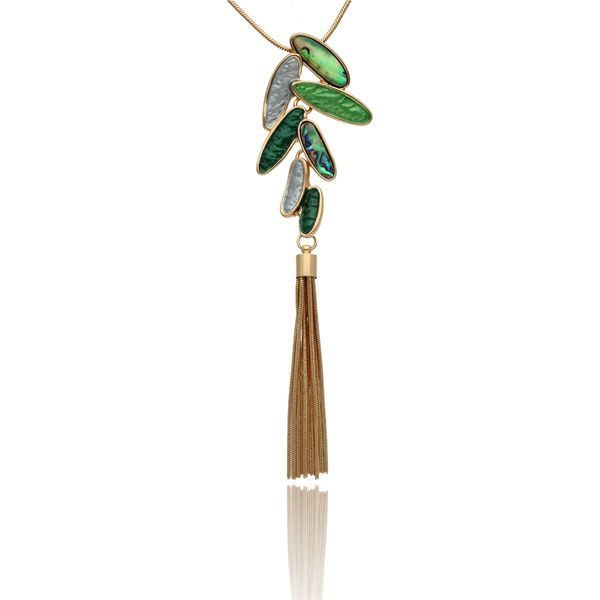 • Naszyjnik z kolekcji YVON BIŻUTERIA ARTYSTYCZNA, wykonany z metalu hipoalergicznego. Zdobiony emaliowanymi elementami, które tworzą elegancką, harmonijną kompozycję. Naszyjnik o długości 65 cm z możliwością regulacji o dodatkowe 8 cm.