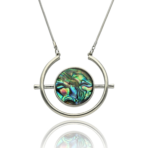 - Dekoltowy naszyjnik z muszli naturalnej ABALONE – długość 45 cm + regulacja Elegancki, krótki naszyjnik wykonany z metalu antyalergicznego, ozdobiony efektowną zawieszką o długości ok. 5 cm. Zawieszka została wykonana z naturalnej muszli Abalonej.