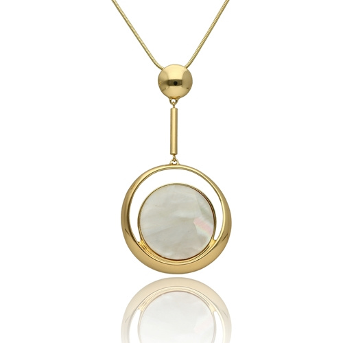 - Naszyjnik z muszli naturalnej mlecznej – długość 45 cm + regulacja Elegancki, krótki naszyjnik wykonany z metalu antyalergicznego, ozdobiony efektowną zawieszką o długości ok. 5 cm. Zawieszka została wykonana z naturalnej muszli mlecznej