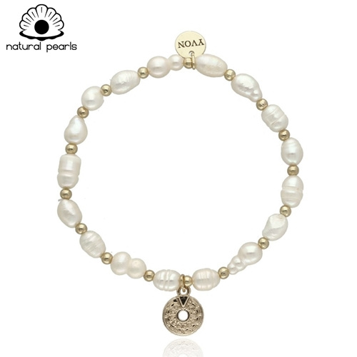 - Bransoletka wykonana z NATURALNYCH PEREŁ SŁODKOWODNYCH. Elementy metalowe wykonane z hipoalergicznego metalu (mosiądz). Bransoletka osadzona na rozciągliwej gumce, dzięki czemu łatwo dopasowuje się do nadgarstka.