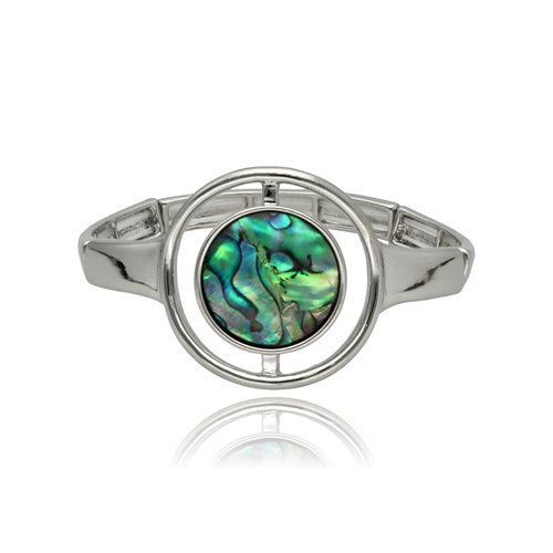 - Bransoletka z muszli naturalnej ABALONE. Stylowa bransoletka na elastycznej gumce, wykonana z metalowych, antyalergicznych elementów i muszli naturalnej Abalone. Bransoletka dopasowuje się do nadgarstka, zapewniając komfort noszenia.