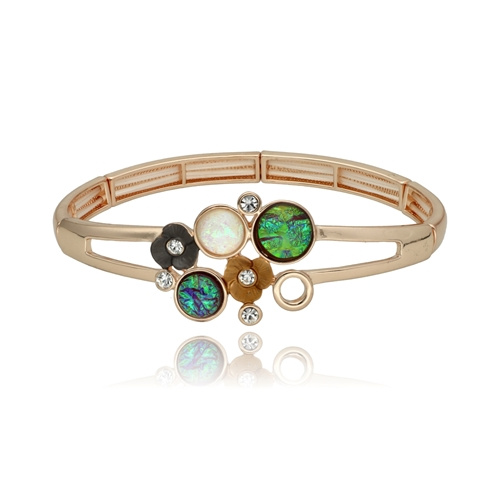 • Elegancka bransoletka wykonana z metalu, kwarcu, szkła kryształowego i cyrkonii. Rozmiar uniwersalny (na rozciągliwych gumkach).