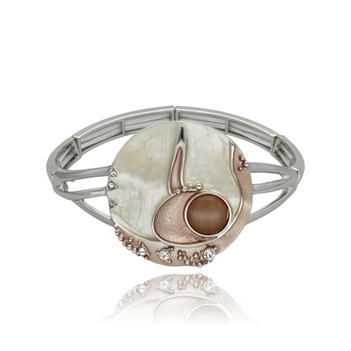 • Elegancka bransoletka wykonana z metalu i żywicy jubilerskiej z efektem głębi. Rozmiar uniwersalny (na rozciągliwych gumkach).